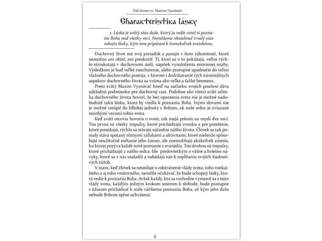 Filokalia venuje svätému Maximovi Vyznávačovi veľký priestor. Nachádzame v nej niekoľko jeho významných diel. Chcem vás pozvať k uvažovaniu nad jedným z nich. Má názov „400 textov o láske“ a patrí medzi najobľúbenejšie a najčítanejšie zo všetkých jeho diel. Namiesto predstavenia tohto diela radšej ponúknem list svätého Maxima Vyznávača určený kňazovi Elpidiosovi, ktorému ho venoval.